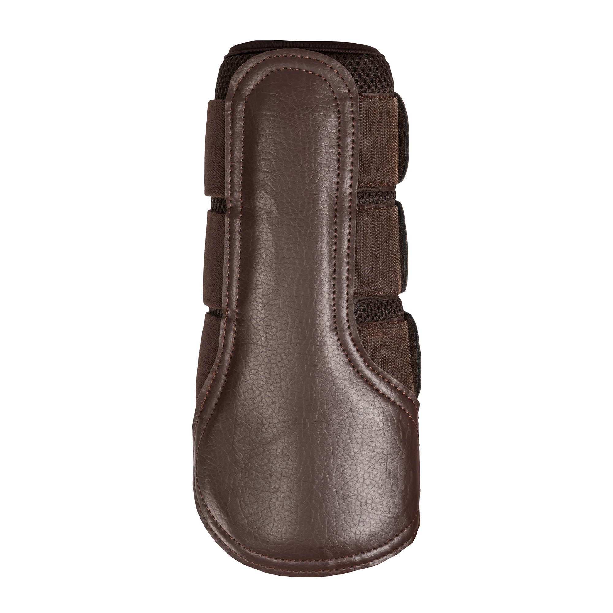 Flexible Gamaschen aus 3D Netzmaterial, mit einer stoßdämpfenden und druckverteilenden Polsterung zum Schutz der Pferdebeine vor Stößen und Verletzungen durch äußere Einwirkung. Die Gamasche ist maximal atmungsaktiv um Überhitzung zu vermeiden. Verstärkte Klettverschlüsse sorgen für eine ideale Passform. Das stilvolle Design zeichnet sich durch Kunstlederüberzüge am Ende der Riemen und über der Polsterung aus.