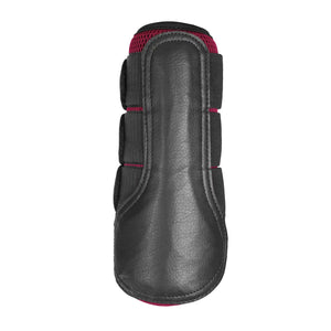 Flexible Gamaschen aus 3D Netzmaterial, mit einer stoßdämpfenden und druckverteilenden Polsterung zum Schutz der Pferdebeine vor Stößen und Verletzungen durch äußere Einwirkung. Die Gamasche ist maximal atmungsaktiv um Überhitzung zu vermeiden. Verstärkte Klettverschlüsse sorgen für eine ideale Passform. Das stilvolle Design zeichnet sich durch Kunstlederüberzüge am Ende der Riemen und über der Polsterung aus.
