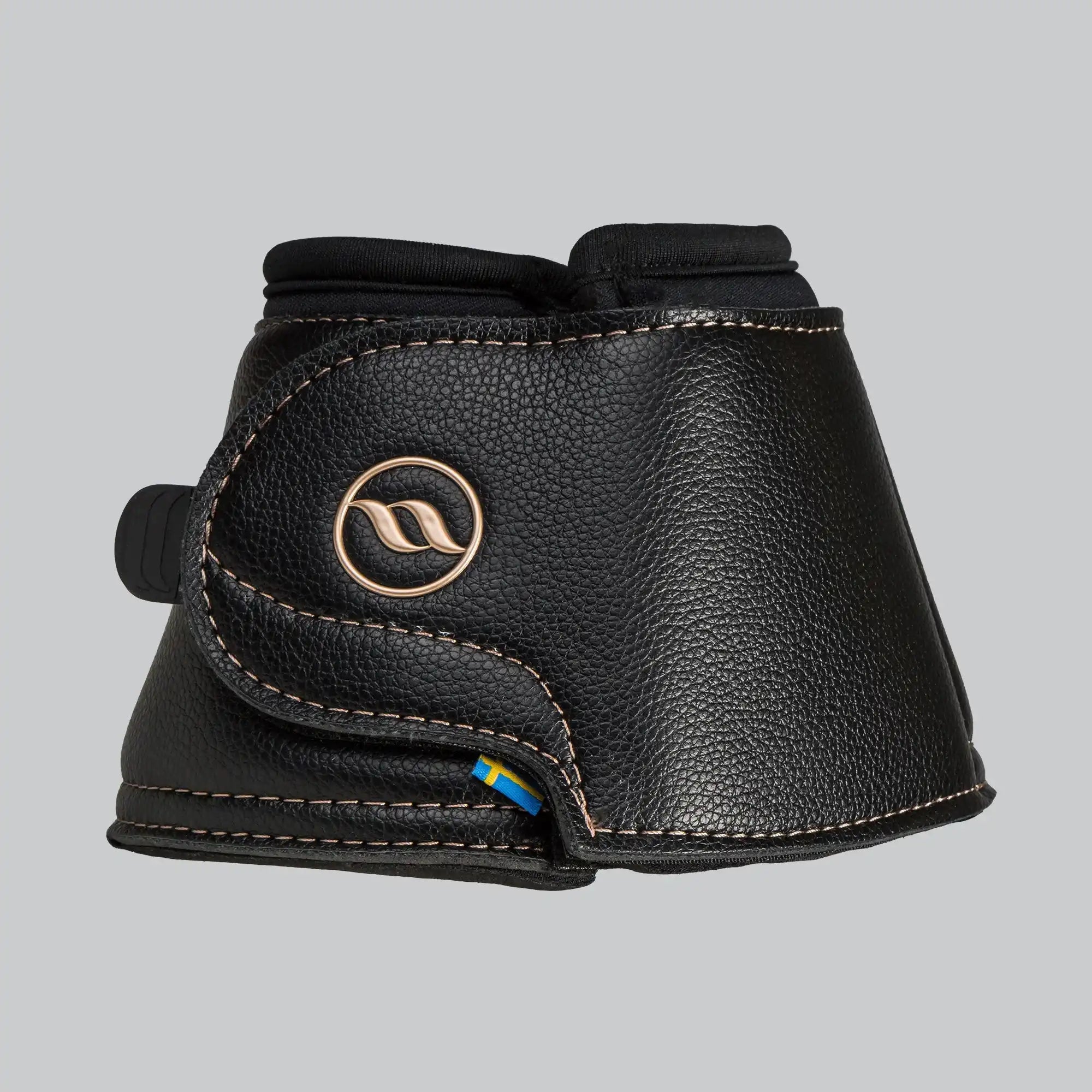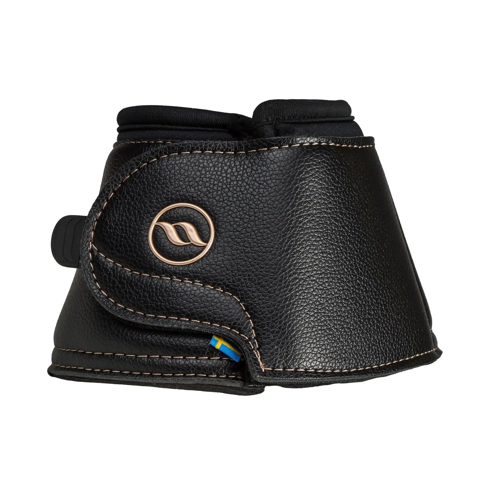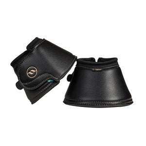 Eine lang erwartete Ergänzung der eleganten Deep Nights Kollektion: Hufglocken mit attraktiven Designmerkmalen, die zu den anderen Produkten passen. Das Außenmaterial besteht aus strapazierfähigem Kunstleder mit einer abriebfesten Oberfläche. Die Glocken werden mit einem stabilen Klettverschluss an Ort und Stelle gehalten. Eine stoßdämpfende und druckentlastende Schaumstofffüllung schützt vor Schlägen, Stößen und Tritten. Enthält die Welltex-Technologie zur Stimulierung der Durchblutung im Bereich des Kronrandes. Die Deep Nights Kollektion ist eine elegante, raffinierte Kollektion mit einfachen, geschmackvollen Verzierungen und matten Golddetails.